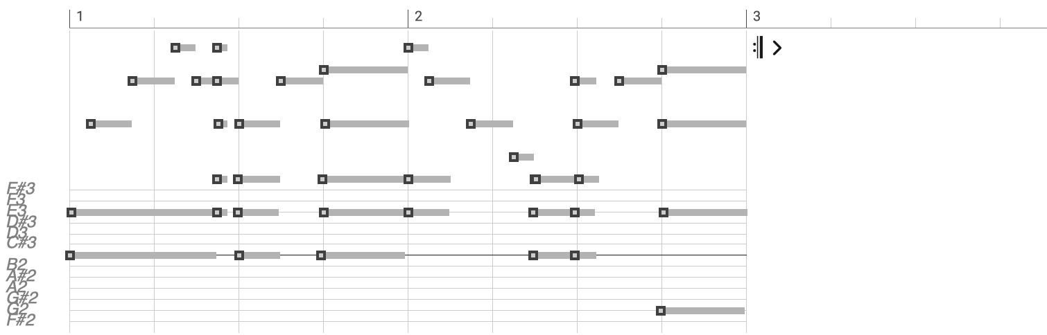 The Take is a temporary buffer for recording and import. It contains the last recorded take or imported MIDI file track in the form of absolute pitches (MIDI). It provides the input for subsequent Figure Recognition or the Harmonizer.