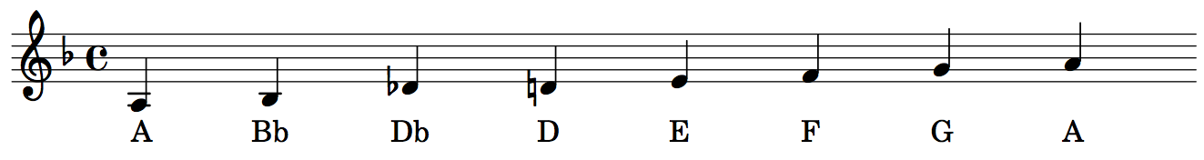 Figure 1. Scale A.Phrygian-Dominant = Mode 5 of D Harmonic-Minor.