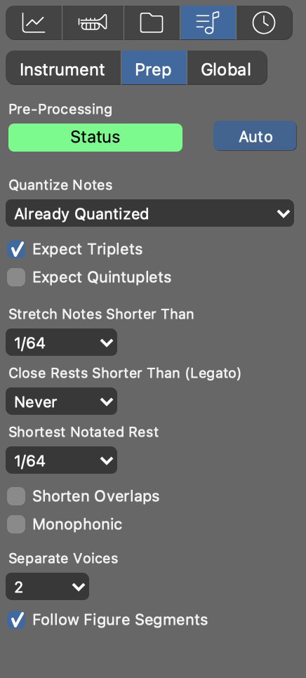 - When enabled, seemingly odd durations of notes and rests will be considered potential tuplets and quantized as such. Disable this if you are sure there are no such tuplets.