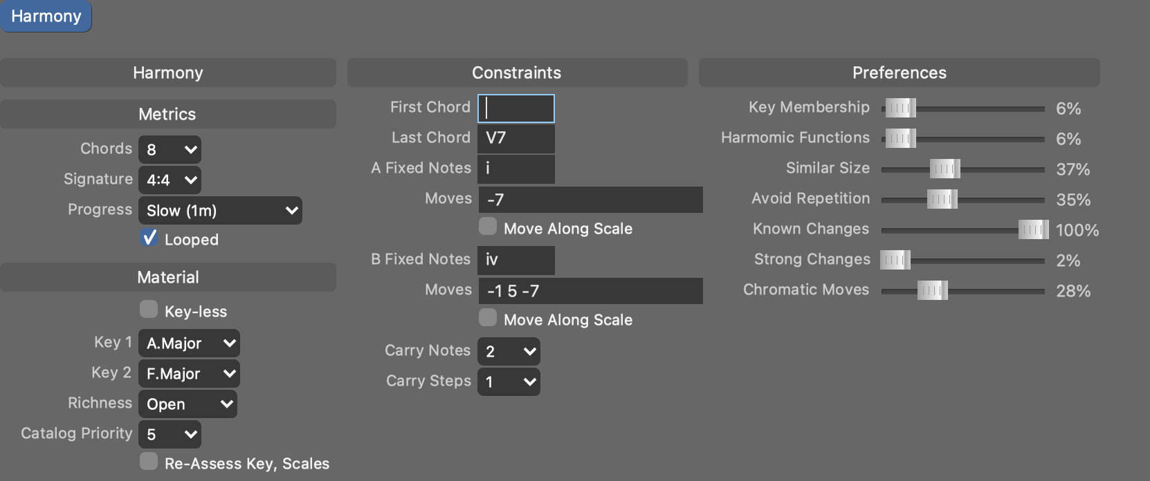 - Multiple sliders allow for adjusting the priority of various properties the chords and transitions between them are supposed to have.