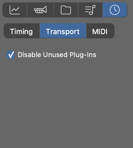 - Plug-ins, die derzeit keine Ausgabe zu spielen haben, erhalten keine Transportinformationen. Dadurch wird verhindert, dass Drum-Maschinen trommeln, wenn sie derzeit nicht gespielt werden sollen (z. B. wenn du andere Instrumente solo schaltest).