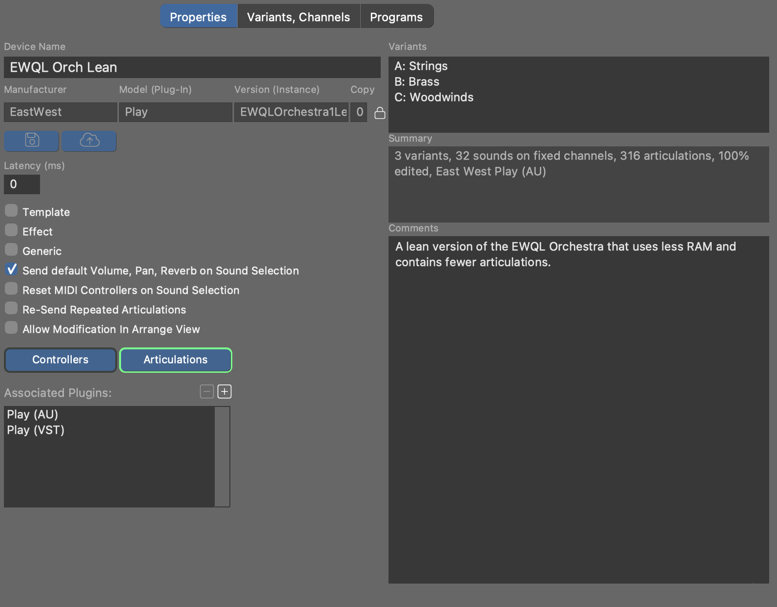 - Edit the Custom Controllers or Custom Articulations available for this device.
