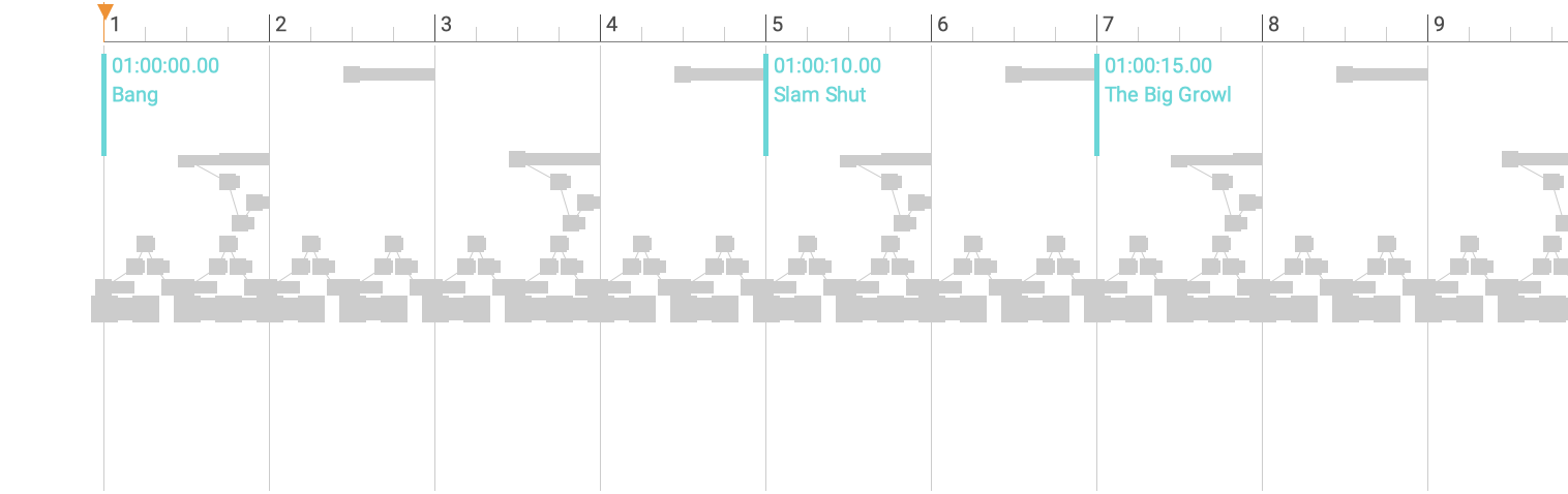 Im Gegensatz zu allen anderen Parametern wird die horizontale Achse der Time nicht in Takten und Schlägen gemessen, sondern in absoluter Zeit. Die Cue-Marker ändern daher dynamisch ihre Position in Abhängigkeit vom Tempo. Das ist der Sinn: Du platzierst Cue-Marker zu absoluten Zeiten, um zu sehen, wo sie in der Musik vorkommen.